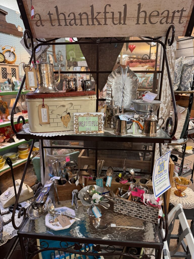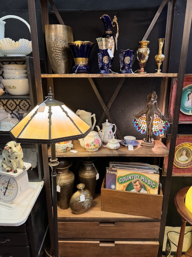An antique shop is a parliament of former lives where chairs, clocks, china, crystal, silver, and cabinets give silent testimony to the habits of generations. Come to Mimi’s on Main and see what generational habits you can find.